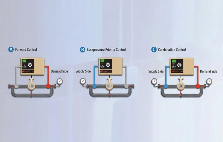 Controle de pressão para frente, contrapressão e combinação
