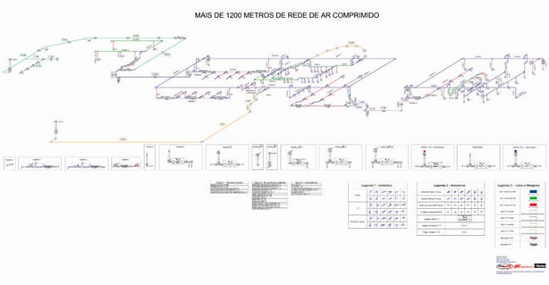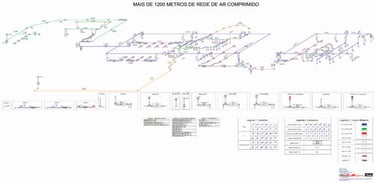 Além dos nossos profissionais altamente qualificados contamos com um ferramental de softwares para executarmos o projeto que sua empresa necessita. Saindo das antigas tabelas que estimavam o diâmetro da tubulação e não informavam velocidade e tão pouco a perda de carga na rede de ar comprimido, nosso ferramental e profissionais calculam o real dimensionamento da rede, minimizando as perdas de carga e fatores que possam atrapalhar ou impossibilitar sua empresa de otimizar a produção por falta de ar. Nossos softwares especiais para dimensionamentos são precisos no projeto e distribuição da rede de ar comprimido, evitando perdas de carga que podem causar problemas na produção além de maiores gastos com energia elétrica na geração e com manutenções do sistema de ar.