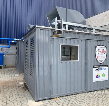 O Safety Air é uma cabine modular industrial, desenvolvida para substituir casas de máquinas convencionais, oferecendo flexibilidade, eficiência energética e proteção total aos compressores.